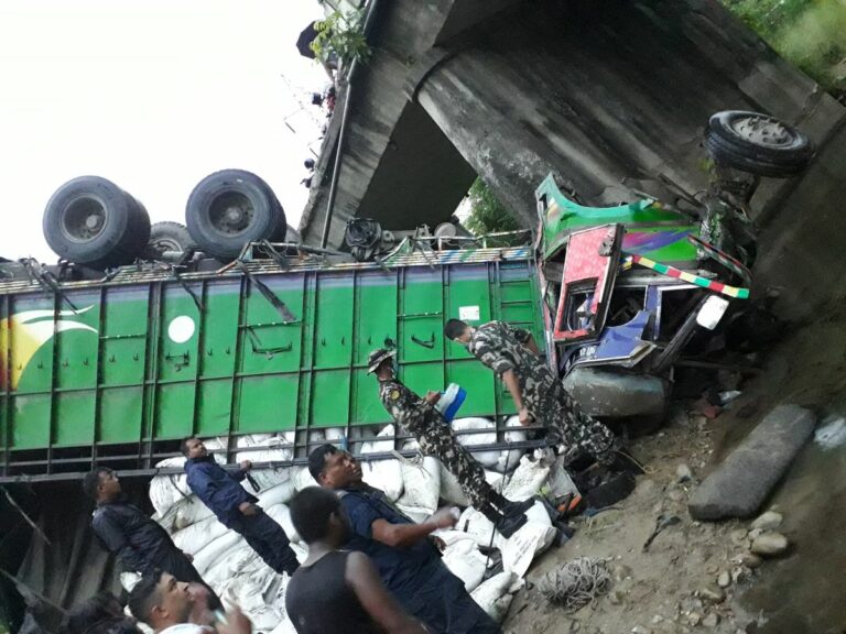 बाँके र दाङको सिमानामा पर्ने शिवखोला पुलबाट आज बिहान ४:३० बजे ट्रक खसेको हो ।