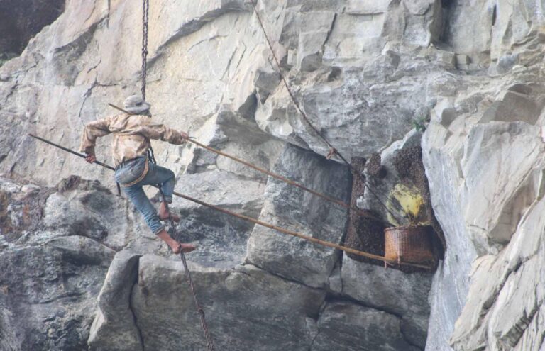 नाताले मामभाञ्जा (हस्तराम मामा र तीर्थमनी भाञ्जा)ले पर्याङ (मालिङ्गोको चोया प्रयोग गरेर बनाइएको भर्याङ)बाट अक्करे भिर टेक्ने र समाउने दुवै ठाउँ नभएको अप्ठ्यारो भिरमा समेत गएर जोखिमपूर्ण अवस्थामा मह सिकार गर्ने गर्दै आउनुभएको छ। उहाँहरूको साथमा सुतारे, दोभाषे (कोट भाषामार्फत सहकर्मीलाई जानकारी दिने व्यक्ति) र अन्य दर्जनबढी सहयोगीले पनि साथ दिँदै आएका छन् ।
