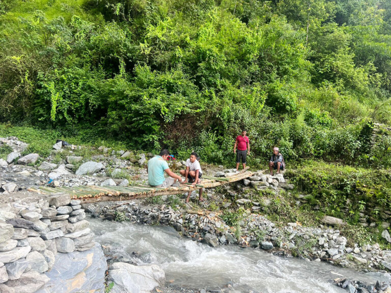 खोला बढेपछि आफूहरुले जङ्गलबाट काठ ल्याएर फड्के बनाएर अहिले वारपार गरिरहेको रानाले बताउनुभयो । “यो खोलामा पुल बनाउनका लागि धेरै पटक माग गरियो, अहिलेसम्म पुल बनेको छैन”, उहाँले भन्नुभयो, “बर्खामा धेरै गाह्रो हुने, केटाकेटीलाई एक्लै विद्यालय पठाउन डर, हामी पाका मान्छेलाई त फड्के तर्दा कतै खोलामा खसिन्छ कि भन्ने डर हुन्छ ।”