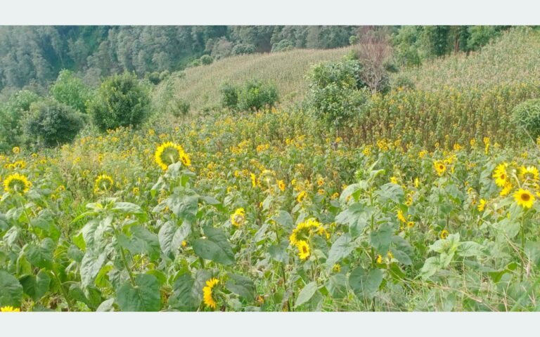 अहिले मिलनले लगाउनुभएको व्यावसायिक सूर्यमुखी फूल ढकमक्क फुलेको छ । सँधियारले आसपासको जग्गामा लगाएको मकै र कोदो फलिरहँदा मिलनको जग्गामा पँहेपुर भएर ढकमक्क फुलेको सूर्यमुखी फूलको खेती देख्दा रमित लाग्दो छ ।