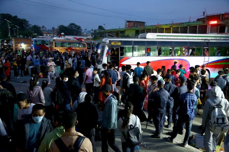 विभिन्न प्रयोजनका लागि राजधानीमा बसोबास गर्दै आएकाहरू दसैँ मनाउन उपत्यकाबाट बाहिरिएका हुन्।