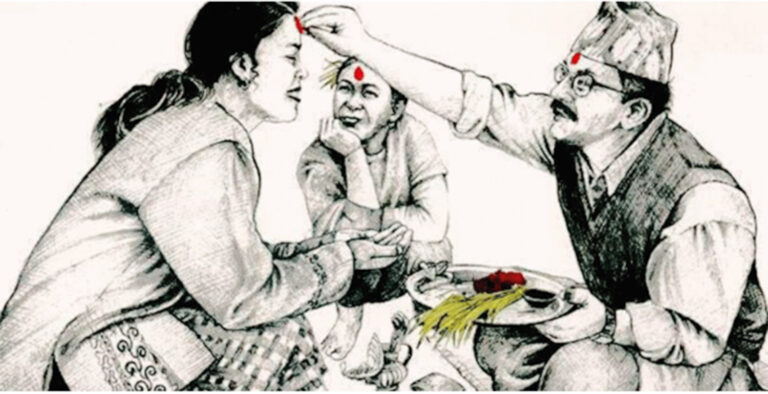 काठमाडौँ-आज आश्विन शुक्ल द्वादशीका दिन पनि नवदुर्गाको प्रसाद स्वरूप टीका थाप्न र आशीर्वाद लिन मान्यजनका घरमा जाने क्रम जारी छ।