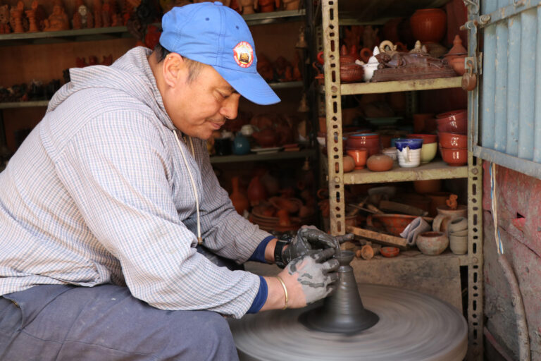पोटरी स्क्वायरकै दयाराम प्रजापतिको पनि हात एकछिन पनि खाली छैन । बाजे बराजुको पालादेखि माटोको भाँडा बनाउँदै आएको उहाँको परिवारमा यो जिम्मेवारी अहिले दयारामले सम्हाल्दै आउनुभएको छ । उहाँ भन्नुहुन्छ, “यस वर्ष पालाको माग धेरै छ, तिहार आइसक्यो, मागअनुसारको पाला उत्पादन गर्न भ्याएकै छैन ।”