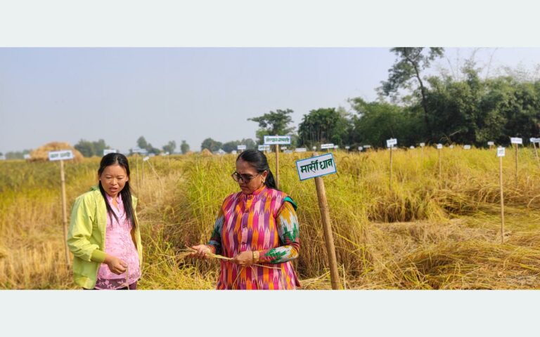 त्यसैगरी, झिनुवा, मिडिया अनदी, थापाचिनी, सेते धान, कालो नुनिया ठूलो, साधारण कालो नुनिया, कालो नुनिया–१, कालो नुनिया–१०, हरिनकेर, परेवा प्वाँख, बामन चिनी, मधुमाला, मधुकर, पुलिङटार, कालो तृलसी, कस्तुरी, बुढीडाइन–३, बङ्गलादेशी, अनमोल ५५, अनमोल कालो टुँडे र बाघ जुङ्गे धान उक्त खेतमा फलेको छ ।