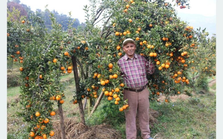 दुई सय सुन्तलाको बोटबाट सुन्तला उत्पादन गरिराख्नुभएका खड्काले अवकाशपछि आफूलाई सुन्तलाखेती समर्पित गराएको बताउनुभयो । “परम्परागत कृषि पेसा पुख्र्यौली थियो, मैले धान फल्ने खेतमा सुन्तला खेती गरेको हँ, शिक्षक, प्रधानध्यापक हुँदै स्रोत व्यक्ति बने, ३७ वर्ष लामो जागिरपछि सुन्तलाखेतीमा लागेँ, अहिले उत्पादन गरेको सुन्तला चितवनको व्यापारीलाई रु पाँच लाखमा एकमुष्ट बिक्री गरेँ, गत वर्ष सुन्तला बिक्रीबाट रु पाँच लाख कमाएको हो”, खड्काल भन्नुभयो ।