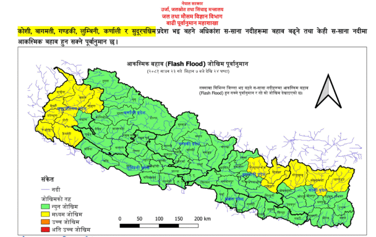 सचेत गराउँदै बाढी महाशाखाले अगाडि भनेको छ- नदी तटीय क्षेत्रमा सतर्कता अपनाउन हुन अनुरोध छ।