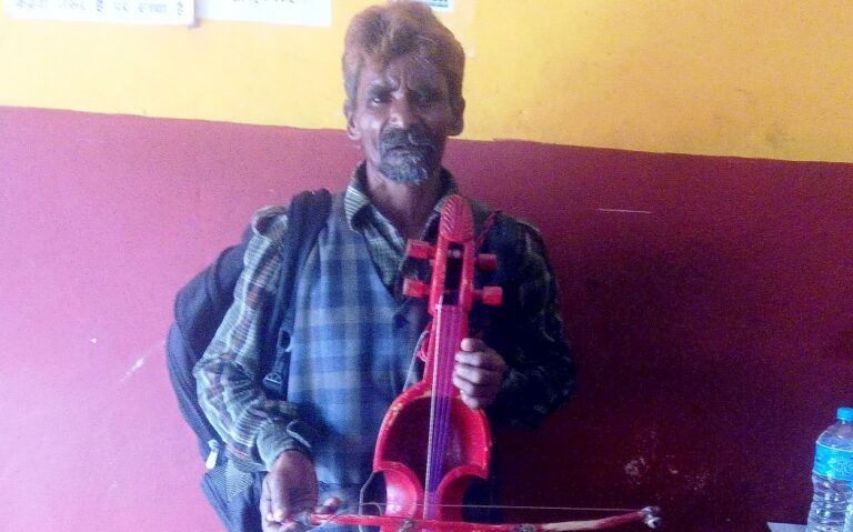 बाँके-जाजरकोट नलगाड नगरपालिकाका ५३ वर्षीय डम्बर गायन नेपालगञ्जमा सारङ्गीको धुनसँगै विरहका भाका सुनाउँदै आउनुभएको छ।