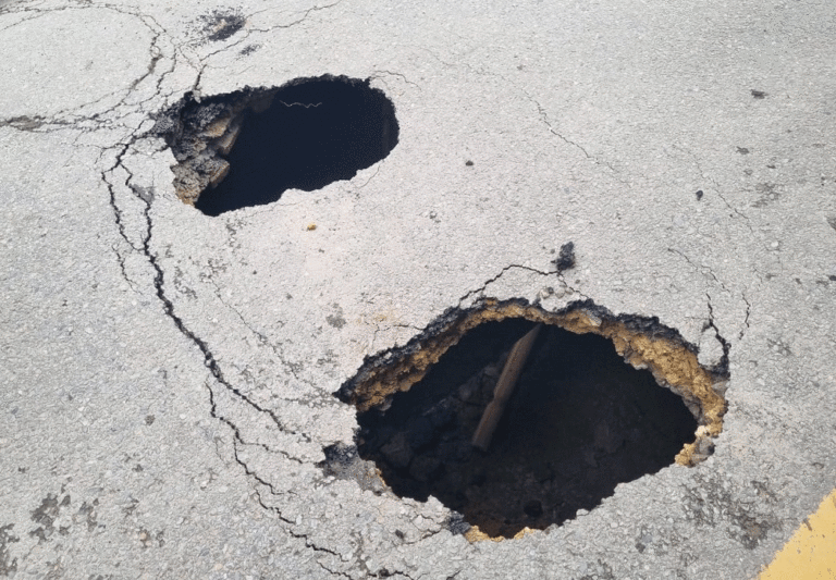 सडकमा झण्डै तीन मिटरका दुईवटा खाडल बनेका छन्। भासिएपछि त्यो सडकमा यातायात सञ्चालन गर्न रोक लगाइएको छ।