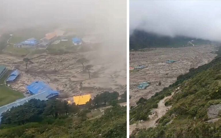 सोलुखुम्बु- सोलुखुम्बुको खुम्बु पासाङल्हामु गाउँपालिका-५ स्थित थामे गाउँभन्दा माथिबाट आज दिउँसो भीषण बाढी आएको छ।