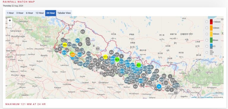 यसैगरी, आज राति देशभर आंशिकदेखि साधारणतया बदली रहने छ। कोशी, मधेस, बागमती, लुम्बिनी, कर्णाली र सुदूरपश्चिम प्रदेशका केही स्थानमा मेघगर्जन र चट्याङसहित हल्कादेखि मध्यम वर्षाको सम्भावना छ। कोशी, बागमती र लुम्बिनी प्रदेशका एक–दुई स्थानमा भारी वर्षाको सम्भावना छ।