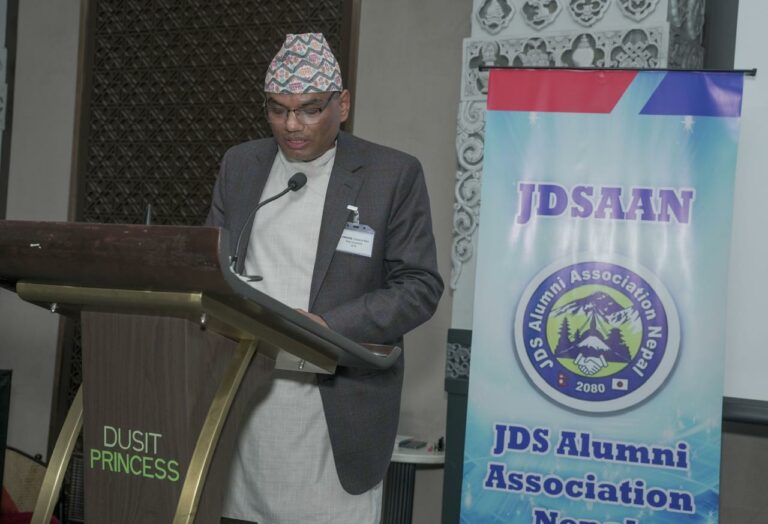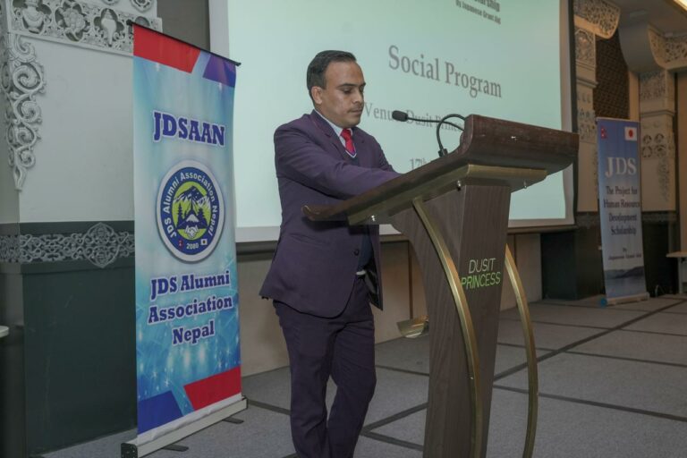 जेडिएस आल्मुनाई एसोसिएसन नेपाल (जेडिसान )को तर्फबाट जेडिसानका अध्यक्ष तथा नेपाल सरकारका गृह सचिव श्री गोकर्णमणि दुवाडीले जापान सरकार र जापनिज दुतावास, जाइका नेपाल तथा जेडिएस नेपालको सहयोग र सहकार्यको लागि हार्दिक अभार व्यक्त गर्दै जापानमा अध्ययन तथा अनुसन्धान गरी फर्किएका नेपाल सरकारको विभिन्न निकाय र तहमा कार्यरत कर्मचारीहरुको कार्यसम्पादनमा सुधार र अनुसन्धानका निष्कर्षहरु कार्यान्वयनमा ल्याउन एकाकार प्रयास गर्ने थलोको रुपमा जेडिसान स्थापना भई क्रियाशील रहेको बताउनु भयो।