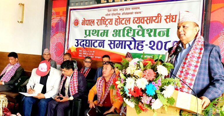 नेपाल राष्ट्रिय होटेल व्यवसायी संघको प्रथम अधिवेशन उद्घाटन समारोहलाई सम्बोधन गर्दै महासचिव पोखरेलले पर्यटन क्षेत्र विस्तारको लागि होटेल क्षेत्रको विकास हुनुपर्ने बताउनुभयो। नेपालमा जति पर्यटक ल्याउनु पर्ने हो त्यसको सानो हिस्सा पनि ल्याउन नसकिएको महासचिव पोखरेलको भनाइ छ। ‘हामी १०/१२ लाख पर्यटक ल्याउँदा खुसी मनाएर बसेका छौँ’, महासचिव पोखरेलले भन्नुभयो।