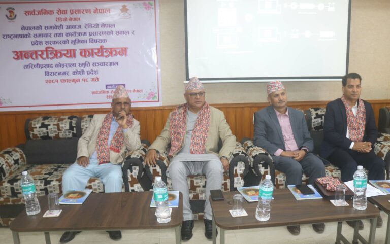 प्रदेशका आन्तरिक मामिला तथा कानुनमन्त्री रेवतीरमण भण्डारीले विपद्को समयमा सरकारी सञ्चारमाध्यमले समाजलाई सुसूचित गर्न महत्वपूर्ण भूमिका निर्वाह गरेको भन्दै प्रशंसा गर्नुभयो । सार्वजनिक सेवा प्रसारण नेपालका अध्यक्ष डा महेन्द्र विष्टले मुलुकमा छरिएर रहेका विभिन्न जातजातिले बोल्ने भाषाको संरक्षणमा रेडियोले महत्वपूर्ण भूमिका निर्वाह गरिरहेको बताउनुभयो।