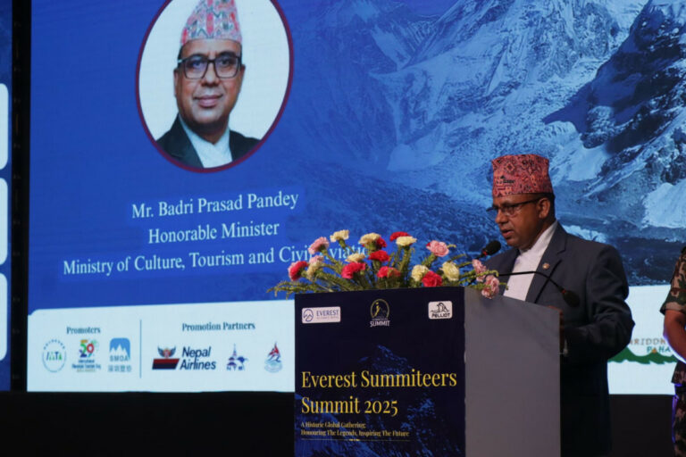 एभरेष्ट समिटियर सम्मेलनको अवसरमा मंगलवार काठमाडौंमा आयोजित कार्यक्रमलाई सम्बोधन गर्दै उहाँले यस्तो बताउनुभएको हो। उहाँले पर्वतीय पर्यटनसँगै स्थानीय समुदायको समृद्धि र जीवनस्तरमा सुधार ल्याउन प्रतिवद्ध रहेको बताउनु भयो । मन्त्री पाण्डेले हिमालयलाई केवल भौगोलिक पर्वत नभई सभ्यता, संस्कृति र सहजीवनको सेतु भएको उल्लेख गर्नुभयो। हिमालहरूको सुरक्षा सबैको साझा जिम्मेवारी भएको बताउनु भयो। हिमाली संस्कृतिको संरक्षण र भविष्यका पुस्ताका लागि हिमाल सुरक्षित राख्नुपर्ने आवश्यकता औंल्याउनु भयो।