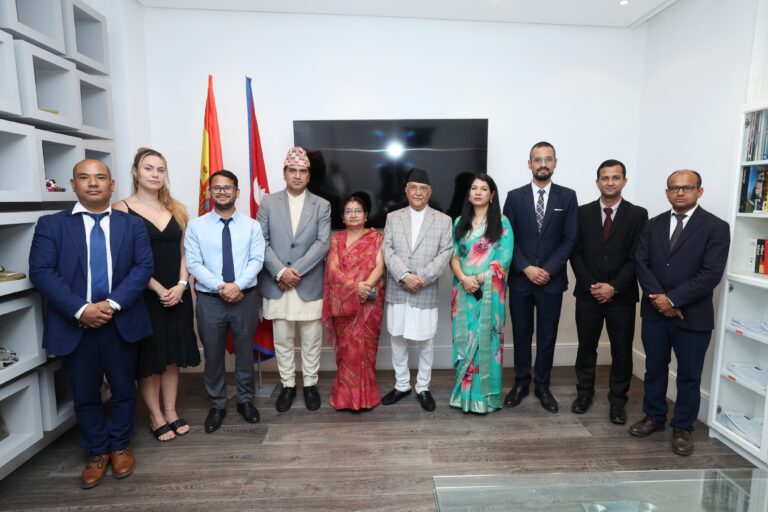 मेड्रिड (स्पेन)-स्पेनको औपचारिक भ्रमणमा रहनुभएका प्रधानमन्त्री केपी शर्मा ओलीले स्पेनको मेड्रिडस्थित नेपाली दूतावासको कार्यालयको निरीक्षण गर्नुभएको छ।