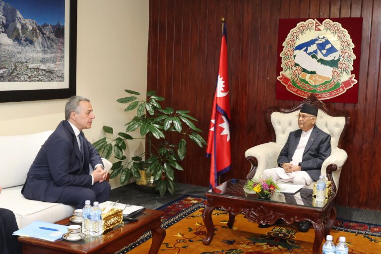 काठमाडौँ-प्रधानमन्त्री केपी शर्मा ओलीसँग स्वीटजरल्याण्डका सङ्घीय विदेशमन्त्री इग्नाजिओ डानियल जिओभान्नी क्यासिसले आज शिष्टाचार भेट गर्नुभएको छ।