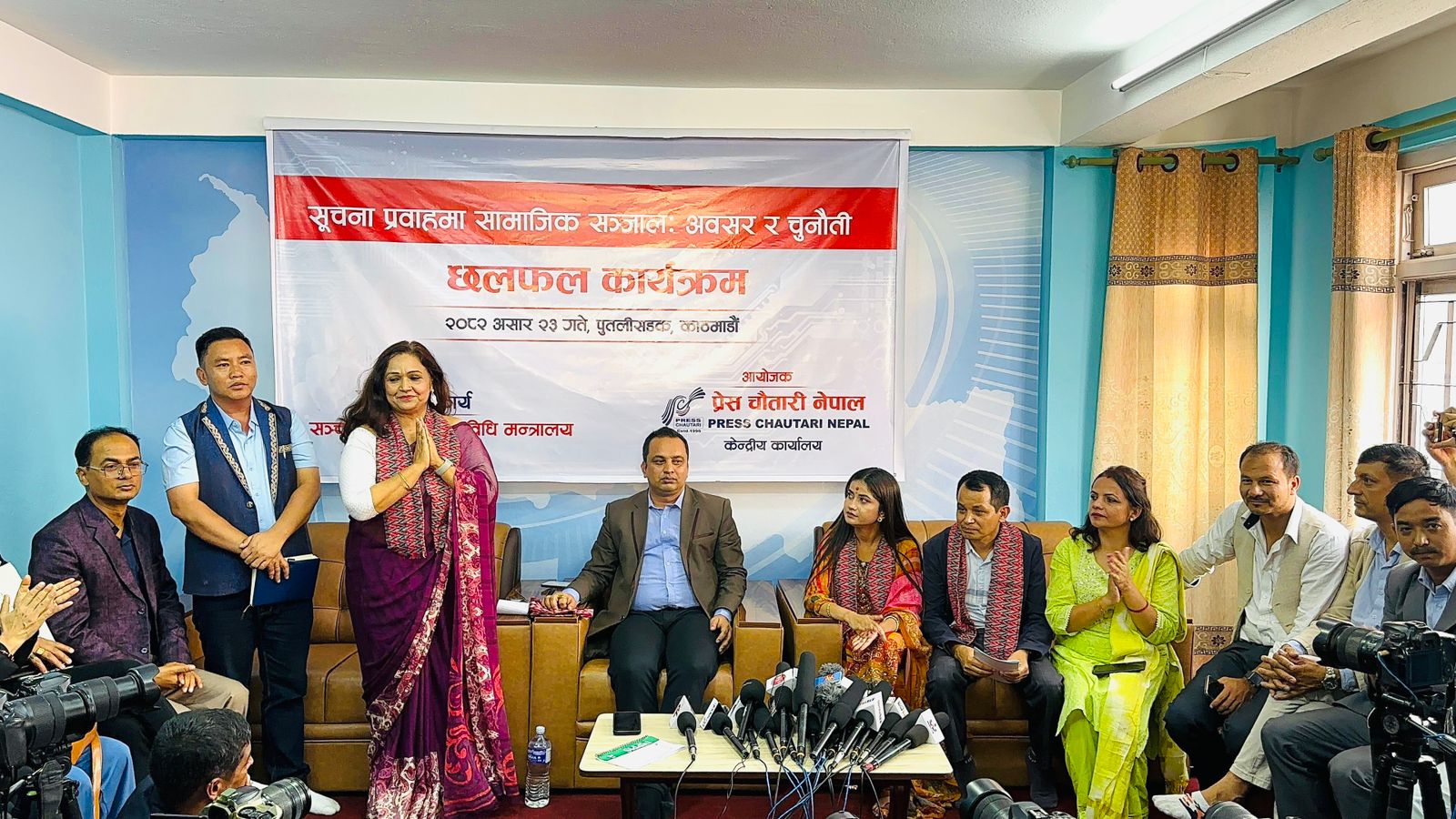 ‘सामाजिक सञ्जाल एउटा अवसर हो, यसको सदुयोग गरेमा ठूलो सामाजिक परिर्वतन ल्याउन सकिन्छ, संसारभरी एकपटक सकरात्मक सन्देश पु¥याउन सकिन्छ’–नेपाल पत्रकार महासङ्घकी अध्यक्ष निर्मला शर्माले भन्नुभयो,’सामाजिक सञ्जालमा आएका सबै समाचार होइनन्, व्यक्तिगत विषय हो वा सार्वजनिक विषय हो, प्रयोगकर्ताले छुट्याउन जरुरी छ, सूचनाबाट अफबाह फैलाउन हुदैन ।’