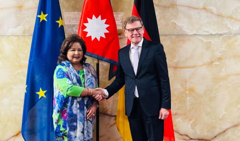 काठमाडौँ-परराष्ट्रमन्त्री डा .आरजु राणा देउवा र जर्मनीका विदेशमन्त्री डा. जोहान डेविड वेडफुलबीच आज द्विपक्षीय भेटवार्ता भएको छ। जर्मनीको बर्लिनमा भएको सो वार्ताका क्रममा नेपाल जर्मनी सम्बन्ध, द्विपक्षीय हित र साझा चासोका विविध विषयमा कुराकानी भएको थियो।
