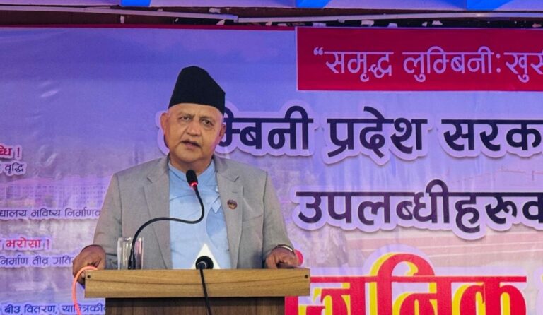 लुम्बिनी-लुम्बिनी प्रदेश सरकारले सङ्घीयताको मर्मअनुसार प्रदेश संरचनाको औचित्य प्रमाणित गर्न नागरिक केन्द्रित सेवा प्रवाहलाई प्राथमिकतामा राखेको छ। संवैधानिक र कानुनी सुधार, सुशासन र पारदर्शिता, विकास परियोजना, वित्तीय प्रबन्ध, शिक्षा, स्वास्थ्य र सामाजिक सुरक्षा, कृषि र रोजगार, पयर्टन, संस्कृति र वातावरण तथा जनतासँगको संवादलगायत काममा प्रदेश सरकार सक्रिय रहेको जनाइएको छ।