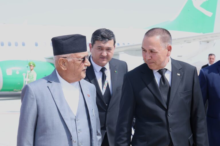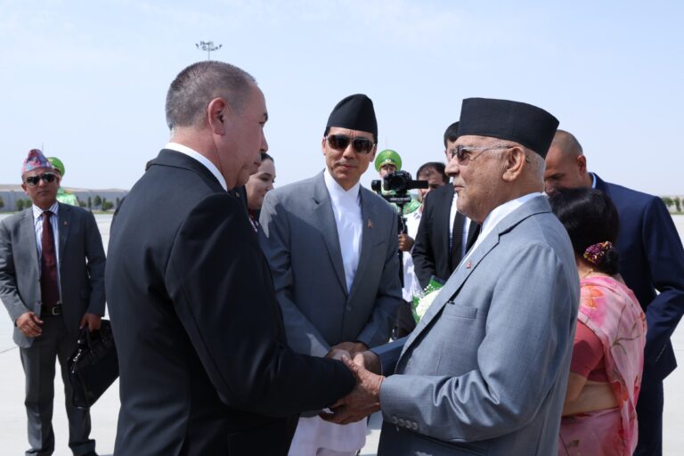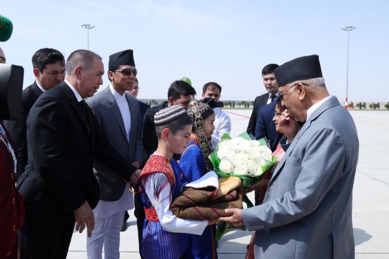 प्रधानमन्त्री ओली नेतृत्वको टाेली स्थानीय समय अनुसार दिउँसो १४.३० बजे दुबई अन्तर्राष्ट्रिय विमानस्थल हुँदै तुर्कमेनिस्तानको आवाजा सहर आइपुग्नुभएको हो। उहाँलाई तुर्कमेनिस्तानबासी अन्तर्राष्ट्रिय विमानस्थलमा तुर्कमेनिस्तान सरकार(मप)का उपाध्यक्ष होजाम्यारात जेल्डिम्यारादोभ, संयुक्त राष्ट्रसंघका लागि नेपालको स्थायी नियोग, न्युयोर्कका आवासीय प्रतिनिधि लोकबहादुर थापालगायतले स्वागत गर्नुभयो।