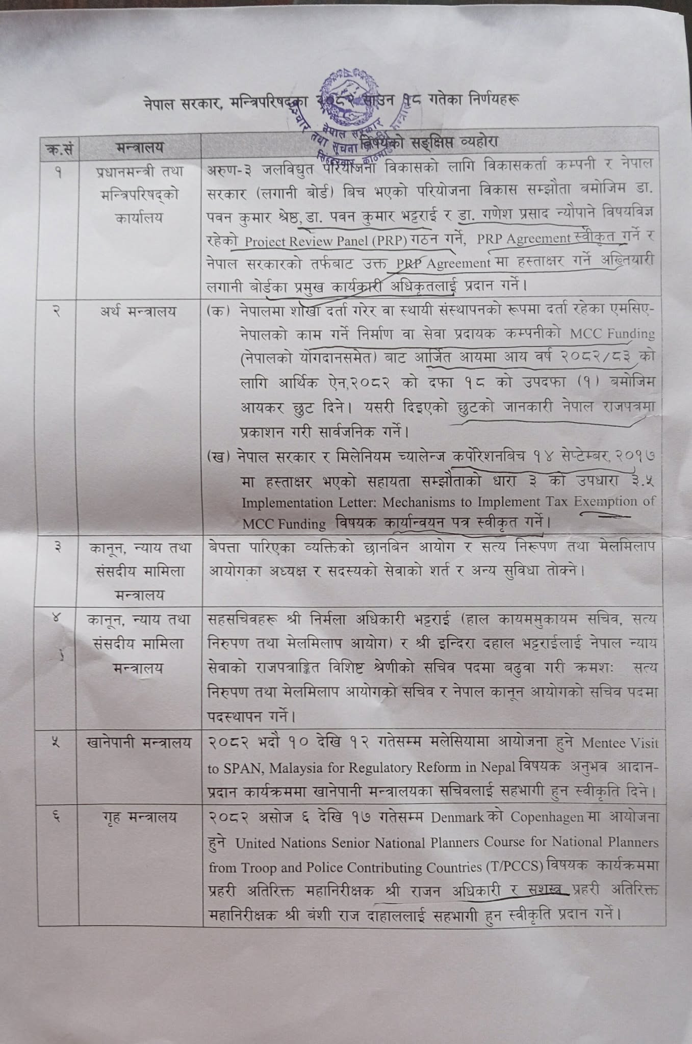 मन्त्रिपरिषद् बैठकका १८ निर्णय