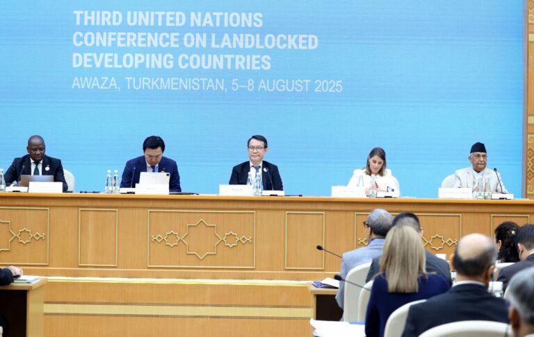 आवाजा (तुर्कमेनिस्तान)-प्रधानमन्त्री केपी शर्मा ओलीले विश्वव्यापी व्यापार प्रणालीमा भूपरिवेष्टित विकासशील राष्ट्रहरूलाई पछाडि पार्न नहुनेमा जोड दिनुभएको छ।