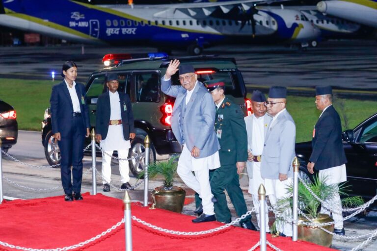 काठमाडौं-प्रधानमन्त्री केपी शर्मा ओली तुर्कमेनिस्तानको भ्रमण सम्पन्न गरी स्वदेश फिर्ता हुनुभएको छ। तुर्कमेनिस्तानको आवाजामा सम्पन्न भूपरिवेष्टित विकासशील राष्ट्रहरूको तेस्रो संयुक्त राष्ट्रसङ्घीय सम्मेलनमा सहभागी भइ आज उहाँ नेतृत्वको टोली स्वदेश फर्केको हो।