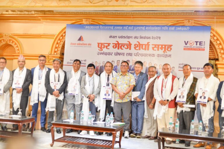 काठमाडौं-नेपाल पर्वतारोहण सङ्घ (एनएमए) को आगामी निर्वाचनमा अध्यक्ष पदका लागि फुर गेल्जे शेर्पाले आफ्नो पूर्ण टिमसहित उम्मेदवारी घोषणा गर्नुभएको छ।