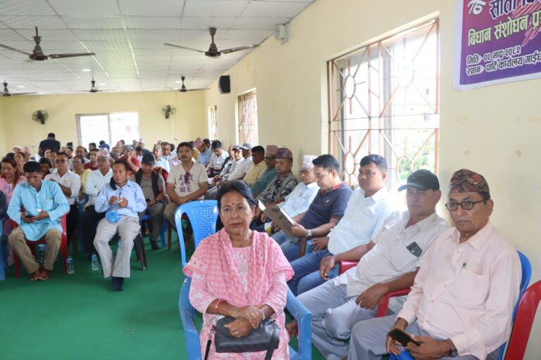 नेकपा एमाले केन्द्रीय पोलिटब्युरो सदस्य तथा उदयपुर इन्चार्ज मञ्जु चौधरी, एमाले केन्द्रीय सदस्य अम्बिका थापा, कोशी प्रदेश कमिटीका उपाध्यक्ष टिकाराम चेम्जोङ लगायतका नेताहरूको उपस्थितिमा विधान संशोधन प्रस्ताव माथि सुझाव सङ्कलन गरिएको हो।