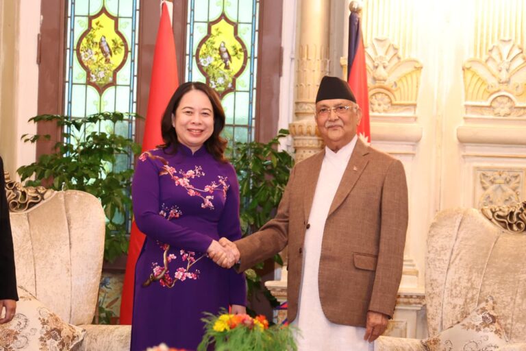 काठमाडौँ- प्रधानमन्त्री केपी शर्मा ओली र भियतनामकी उपराष्ट्रपति भो थि आन सुआनबीच भेटवार्ता भएको छ।
