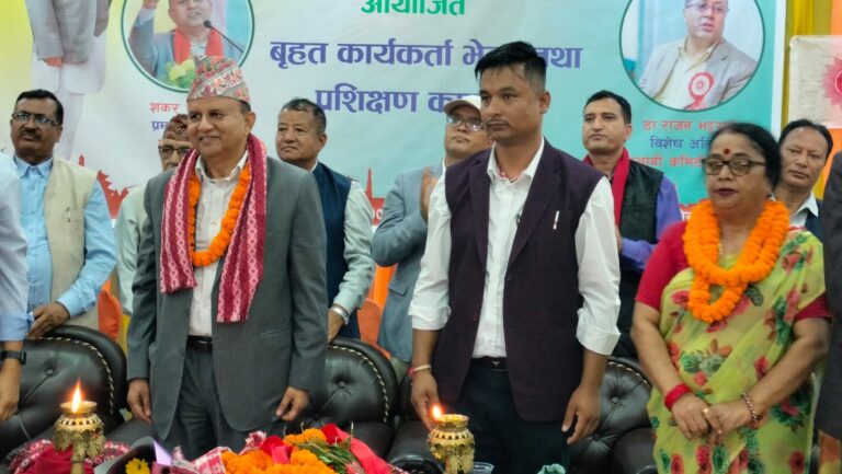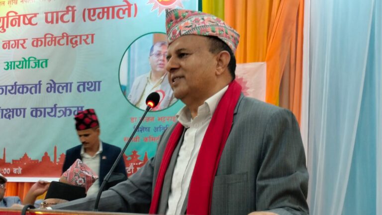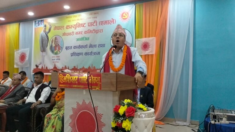 गोदावरी नगर कमिटीद्वारा आयोजित कार्यकर्ता भेला तथा प्रशिक्षण कार्यक्रममा सम्बोधन गर्दै महासचिव पोखरेल, ‘देशमा ओलीको विकल्प छैन। संसदमा दोस्रो ठूलो पार्टी भए पनि जनताको मनमा एमाले नै पहिलो पार्टी हो।’