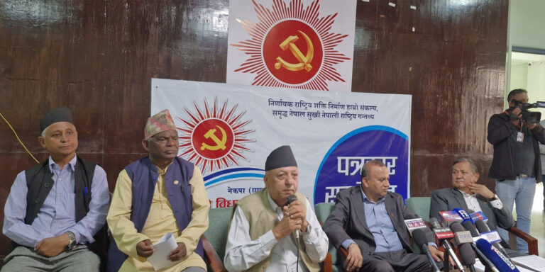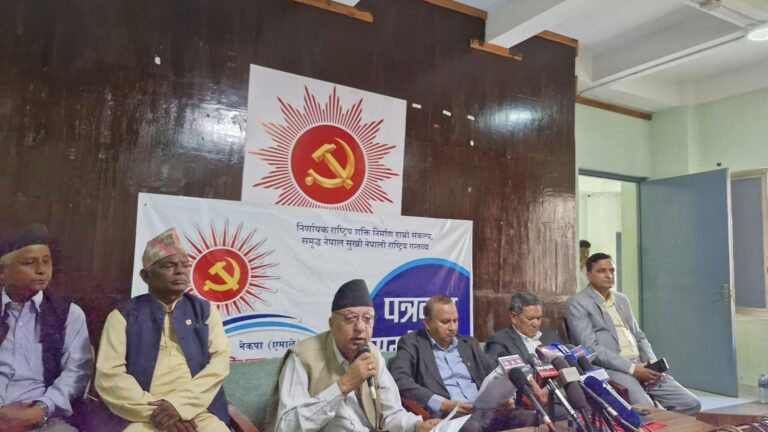 पत्रकार सम्मेलनमा विधान महाधिवेशन बारेमा महासचिव शंकर पोखरेलले जानकारी गराउँदै हुनुहुन्छ।