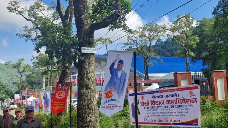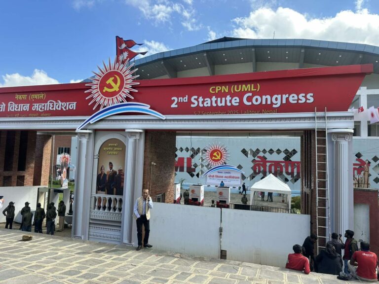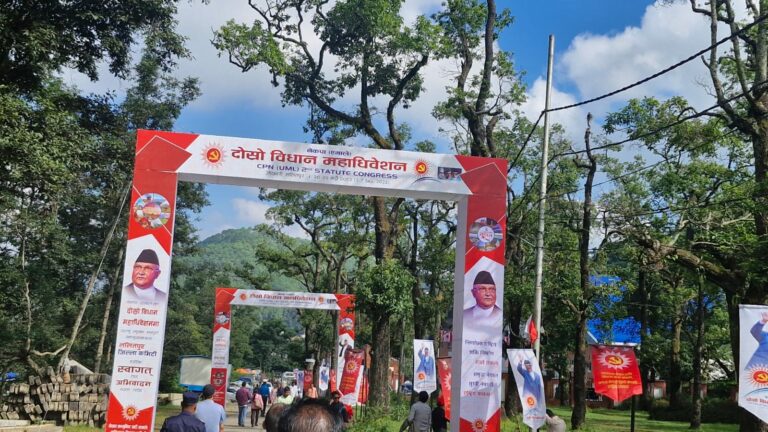 ‘निर्णायक राष्ट्रिय शक्ति निर्माण हाम्रो सङ्कल्प, समृद्ध नेपाल सुखी नेपाली राष्ट्रिय गन्तव्य’ मूल नारासहित सुरु हुने नेकपा (एमाले) दोस्रो विधान महाधिवेशन स्थल गोदावरी सनराइज सभाहलतिर अहिले सातदोबाटोबाट प्रतिनिधि, पर्यवेक्षक, पार्टी शुभचिन्तकहरु आउनेक्रम जारी छ।