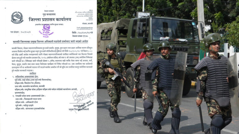 गण्डकी-कास्की जिल्ला प्रशासन कार्यालयले आज बिहान ८ बजेदेखि अर्को आदेश नभएसम्मका लागि जनाउँदै जिल्लाका विभिन्न स्थानमा निषेधाज्ञा जारी गरेको छ।