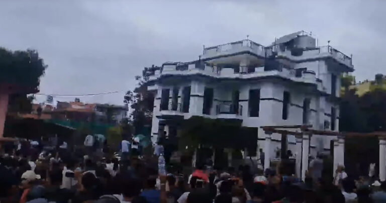 मुख्य गेट फुटाएर घर भित्र प्रवेश गरेका प्रदर्शनकारीले घरभित्रै आगो लगाइदिएका हुन्।