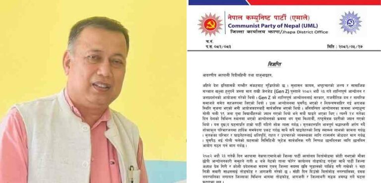 झापा – नेपाल कम्युनिष्ट पार्टी एमाले झापा जिल्ला कमिटीले भदौ २३ र २४ गते देशभरि भएका आन्दोलनका क्रममा झापामा पार्टी कार्यालय, नेताहरुका घर तथा विभिन्न सार्वजनिक सम्पत्तिमा भएको तोडफोड र आगजनीप्रति गहिरो चिन्ता प्रकट गरेको छ ।