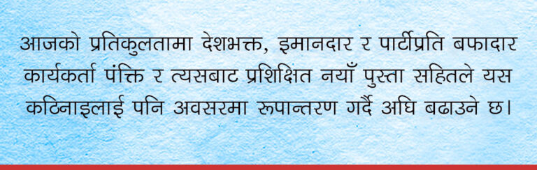 नेता भट्टराईले सबै कार्यकर्तालाई विचलित नभई दृढ निश्चयका साथ अगाडी बढ्न आग्रह गर्नुभएको छ।