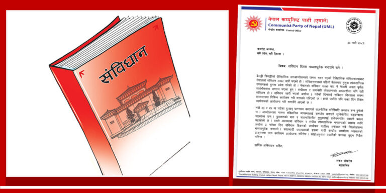 विज्ञप्तिमा संविधान दिवसलाई राज्यस्तरमा समेत विशेष कार्यक्रममार्फत मनाउँदै आएको उल्लेख गर्दै एमालेले यस वर्ष पनि देशभर कार्यक्रम गर्ने जनाएको छ।