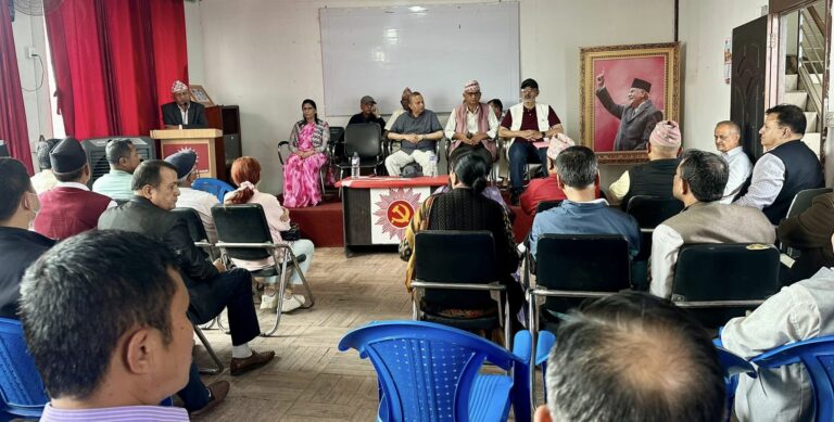 बैठकमा महासचिव शंकर पोखरेललगायतका नेताहरू सहभागी हुनुहुन्छ।