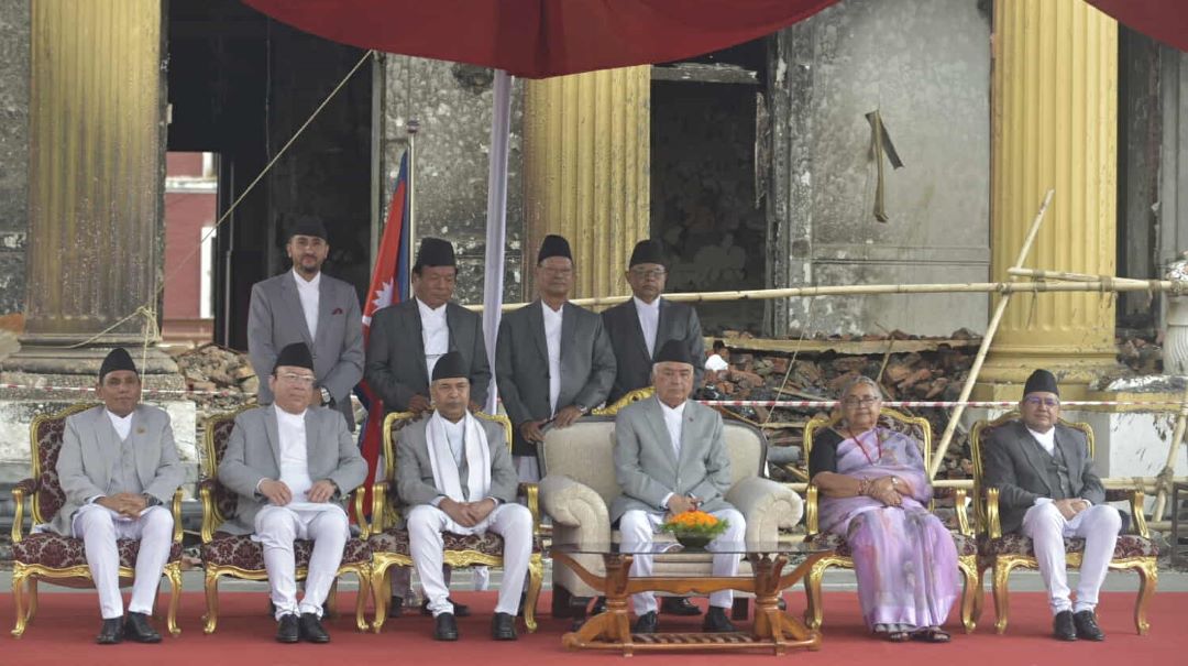 काठमाडौं- राष्ट्रपति रामचन्द्र पौडेलसमक्ष चार जना नवनियुक्त मन्त्रीहरुले आज पद तथा गोपनीयताको शपथ लिनुभएको छ। राष्ट्रपतिको कार्यालय शीतल निवासमा आयोजित विशेष कार्यक्रममा उहाँहरुले शपथ ग्रहण गर्नुभएको हो।