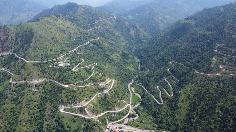 पाँचथर-पाँचथरको फिदिम नगरपालिका–४ र ९ मा विस्तार भएको पुष्पलाल (मध्यपहाडी) लोकमार्ग, तमोर कोरिडोर सडक र शिवादोभान–लुम्फाबुङ–नवमीडाँडा सडकको ड्रोनबाट लिइएको तस्बिर। तस्बिरः रवीन्द्र काफ्ले/रासस