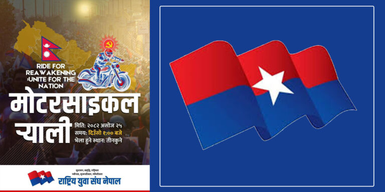 काठमाडौं-नेकपा एमाले निकट राष्ट्रिय युवा संघ नेपालले देशभक्ति र राष्ट्रिय एकताको सन्देश दिने उद्देश्यले असोज २५ गते अर्थात् भोलि शनिवार राजधानीमा भव्य मोटरसाइकल र्याली आयोजना गर्ने भएको छ।