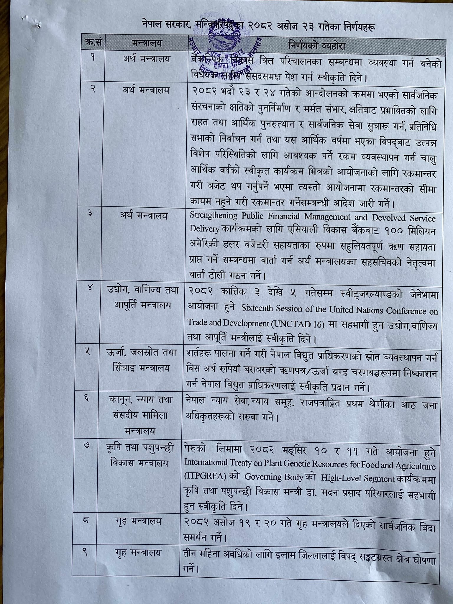 काठमाडौं-सरकारले मन्त्रिपरिषद् बैठकका निर्णय सार्वजनिक गरेको छ। शुक्रबार सरकारका प्रवक्ता एवम् सञ्चार तथा सूचना प्रविधिमन्त्री जगदीश खरेलले पत्रकार सम्मेलन गर्नुहुँदै असाेज २३ गतेको मन्त्रिपरिषद् बैठकका निर्णय सार्वजनिक गर्नुभएको हो।