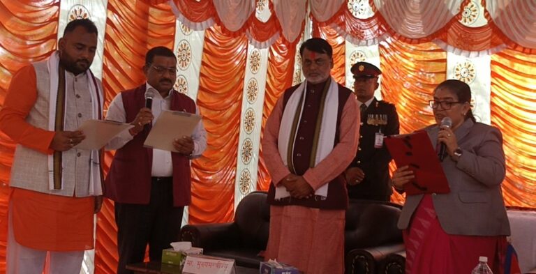 महेन्द्रनगर-मधेस प्रदेश सरकारका नव नियुक्त दुई मन्त्रीले पद तथा गोपनीयताको शपथ लिनुभएको छ। जनकपुरधाम स्थित प्रदेश प्रमुखको कार्यालयमा आज आयोजित एक समारोहबीच जनमत पार्टीका संसदीय दलका नेता महेशप्रसाद यादव र नेपाल कम्युनिष्ट पार्टी एकीकृत समाजवादी प्रमुख सचेतक कनिष पटेलले विना विभागीय मन्त्रीका रुपमा पद तथा गोपनीयताको सपथ लिनुभएको हो।