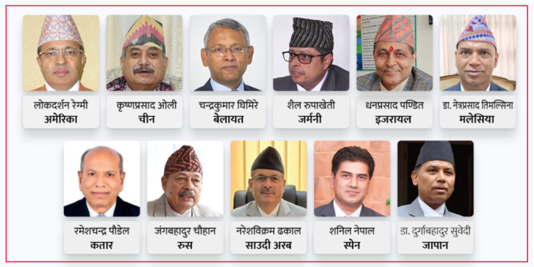 चीन, जर्मनी, मलेसिया, इजरायल, कतार, रुस, साउदी अरब, स्पेन, संयुक्त अधिराज्य, संयुक्त राज्य अमेरिका र जापानका लागि नेपाली आवासीय राजदुतहरूलाई फिर्ता बोलाइएको थियो ।