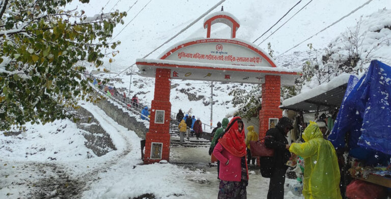 प्रसिद्ध धार्मिकस्थल मुक्तिनाथ मन्दिर र त्यसआसपासका क्षेत्रमा हिउँ पर्ने क्रम रोकिएको छैन। वारागुङ मुक्तिक्षेत्र-३ छुसाङदेखि तल्लो क्षेत्रका बस्तीमा निरन्तर वर्षा भइरहेको छभने बस्तीदेखि माथिका उच्चलेकमा हिउँ परेको छ। मनाङ हुँदै थोरङलापास पदमार्ग, जोमसोम, ठिनी हुँदै तिलिचो जाने नमुखलेकदेखि मेसोकोन्दो पास पदमार्ग र धौलागिरि आइसफलको धम्पुस पिक पदमार्गलगायत स्थानमा बाक्लो हिउँ पर्दा पदमार्ग अवरुद्ध भएका छन्।