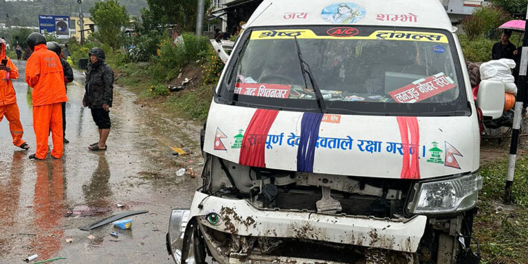तनहुँ-पृथ्वीराजमार्गअन्तर्गत तनहुँको आँबुखैरेनी गाउँपालिका–२ एक्लेफाँटमा विद्युतीय माइक्रोबस दुर्घटना हुँदा १४ जना घाइते भएका छन्। चितवनबाट लमजुङतर्फ जाँदै गरेको माइक्रोबस अनियन्त्रित भई सडकछेउको भित्तामा ठोक्किएको थियो।