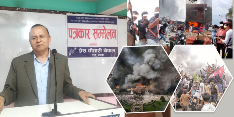 प्रेस चौतारी नेपाल दाङ शाखाले आज घोराहीमा आयोजना गरेको पत्रकार सम्मेलनमा महासचिव पोखरेलले न्यायालयमाथिको आक्रमण सामान्य नभएकाले निष्पक्ष छानबिन गरी आक्रमण गर्नेलाई कानुनी दायरामा ल्याउनुपर्नेमा जोड दिनुभयो। उहाँले न्यायालय र प्रहरी प्रशासनमाथि प्रहार नेपालको कानुनी व्यवस्थालाई खल्बल्याउने षड्यन्त्रको परिणाम भएको टिप्पणी गर्नुभयो।