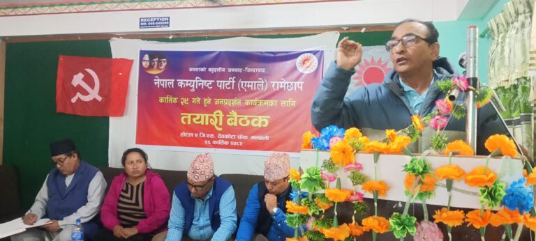 नेकपा एमाले रामेछापले कात्तिक २९ गते जिल्ला सदरमुकाम मन्थलीमा आयोजना गर्न लागेको जनप्रदर्शनको तयारीका लागि बुधबार मन्थलीमा आयोजना गरिएको बैठकमा बोल्दै उहाँले संसद् स्थापनाबाट नै अहिलेको सङ्कट समाधान गर्न सकिन्छ भन्ने कुरामा नेकपा एमाले स्पष्ट रहेको बताउनुभयो। ‘संविधानलाई ट्र्याकमा ल्याउन संसद् पुनर्स्थापना गरेर नै जाने हो’, उहाँले भन्नुभयो।