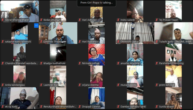 नेकपा एमाले झापाका अगुवा कार्यकर्ताहरुलाई आज साँझ भर्चुअल सम्बोधन गर्दै अध्यक्ष ओलीले अलोकतान्त्रिक सरकारले चुनाव गराउने नाटक गर्नु आफैंमा हास्यास्पद भएको बताउनुभयो ।